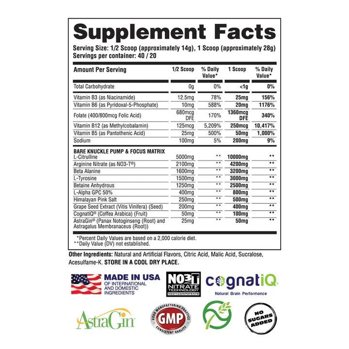 Each massive tub of Apollon Nutrition Hooligan Bare Knuckle provides you with either 40 or 20 servings – depending on how strong you want your pre-workout to be. You can mix it with 1/2 serving of OG Stimulant Hooligan or double up for a non-stimulant flexapalooza pump orgy. Basically strong or STRONG AF WITHOUT STIMULANTS. That being said, you should proceed with caution when using our new and improved formula. Bare Knuckle is not your average pre-workout powder – IT WILL PUNCH YOU IN THE FACE WITH POTENCY.