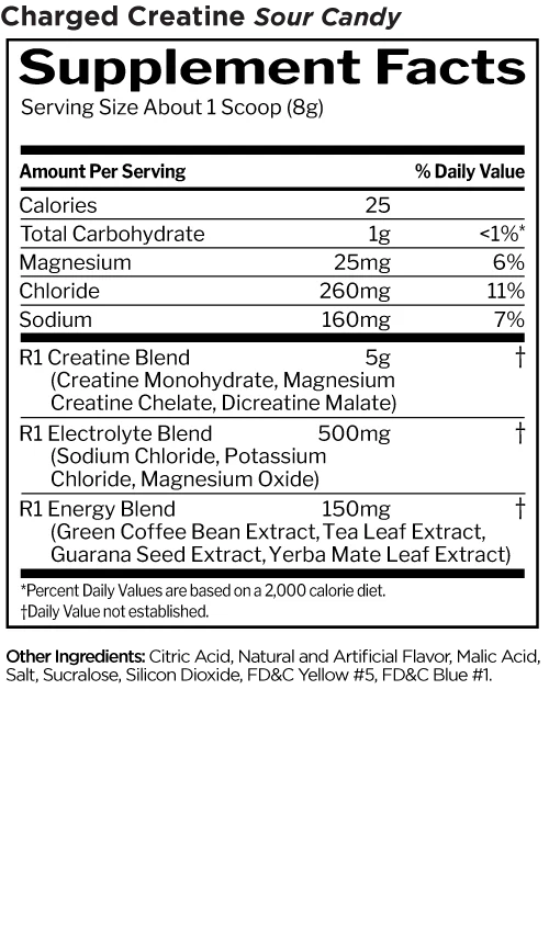 Charged Creatine combines three powerful forms of creatine — Monohydrate, Magnesium Chelate, and Di-Malate — with electrolytes and natural-source caffeine to fuel your body for the toughest training sessions. Experience boosted power, enhanced endurance, and next-level intensity as you push through every rep.