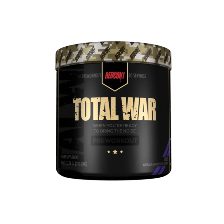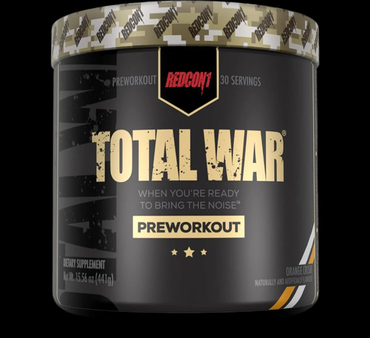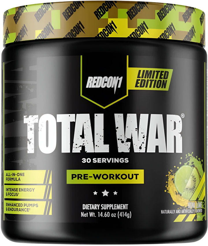 Unleash next-level intensity with Total War Pre-Workout by Redcon1, a fully loaded, clinically dosed formula built to deliver insane energy, skin-splitting pumps, and laser-focused performance. With close to 13g of active ingredients per scoop, this powerhouse pre-workout combines potent stimulants, nootropics, and maximally dosed nitric oxide boosters to help you dominate every session with unrelenting power.