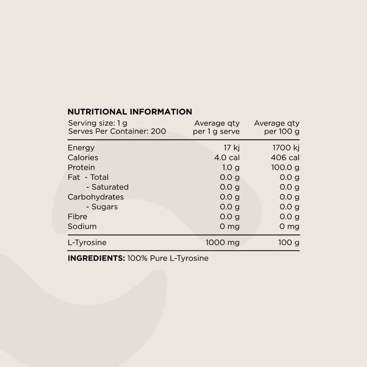 Switch Nutrition Tyrosine is a 100% pure L-Tyrosine supplement designed to support focus, energy, and performance. As a key precursor to neurotransmitters like dopamine, adrenaline, and noradrenaline, L-Tyrosine plays a vital role in sustaining mental clarity, mood balance, and energy — especially during periods of physical or cognitive stress.